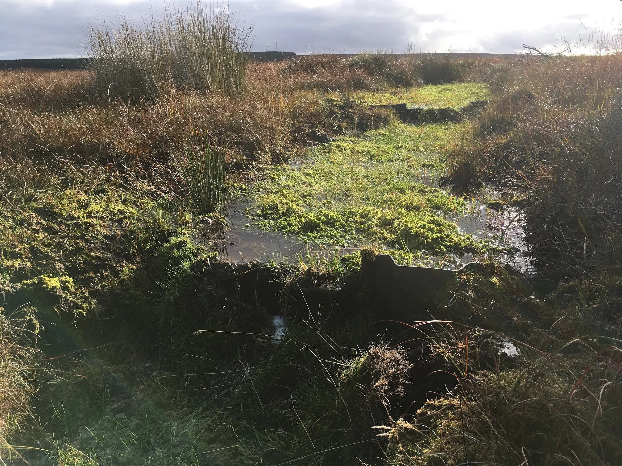 Figure 6. A blocked drain on the RSPB Forsinard Flows Reserve, showing over 75% infilling with Sphagnum.