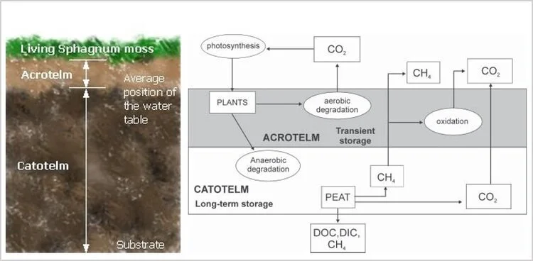 Figure 1. Hydrological structure the peat mass and the exchange of carbon