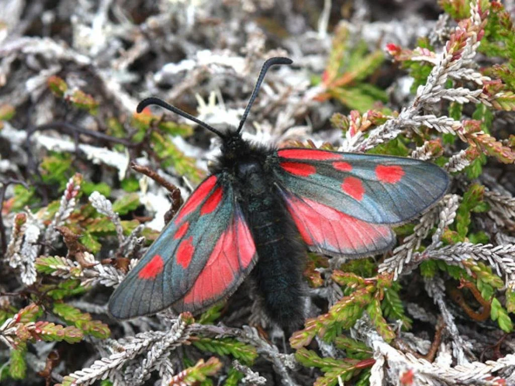 What affects vascular plants, especially the flowering species also affects the pollinators that depend on them. Sub-alpine habitats are home to specialist butterflies and moths, in one study in the French Pyrenees the Mountain or Scotch Burnet moth had adjusted to a 1-degree increase in air temperature by shifting its range upslope by 450 m losing 79% of its range in 50 years. This same species is Red data listed (category 3 - rare) in the UK being found only in the same Boreal Taiga belt as discussed earlier in this post in Scotland, with its caterpillars feeding on the leaves and unripe berries of Crowberry, Cowberry and Bilberry and the butterflies attracted to the delicate flowers that live amongst the dwarf shrubs.
